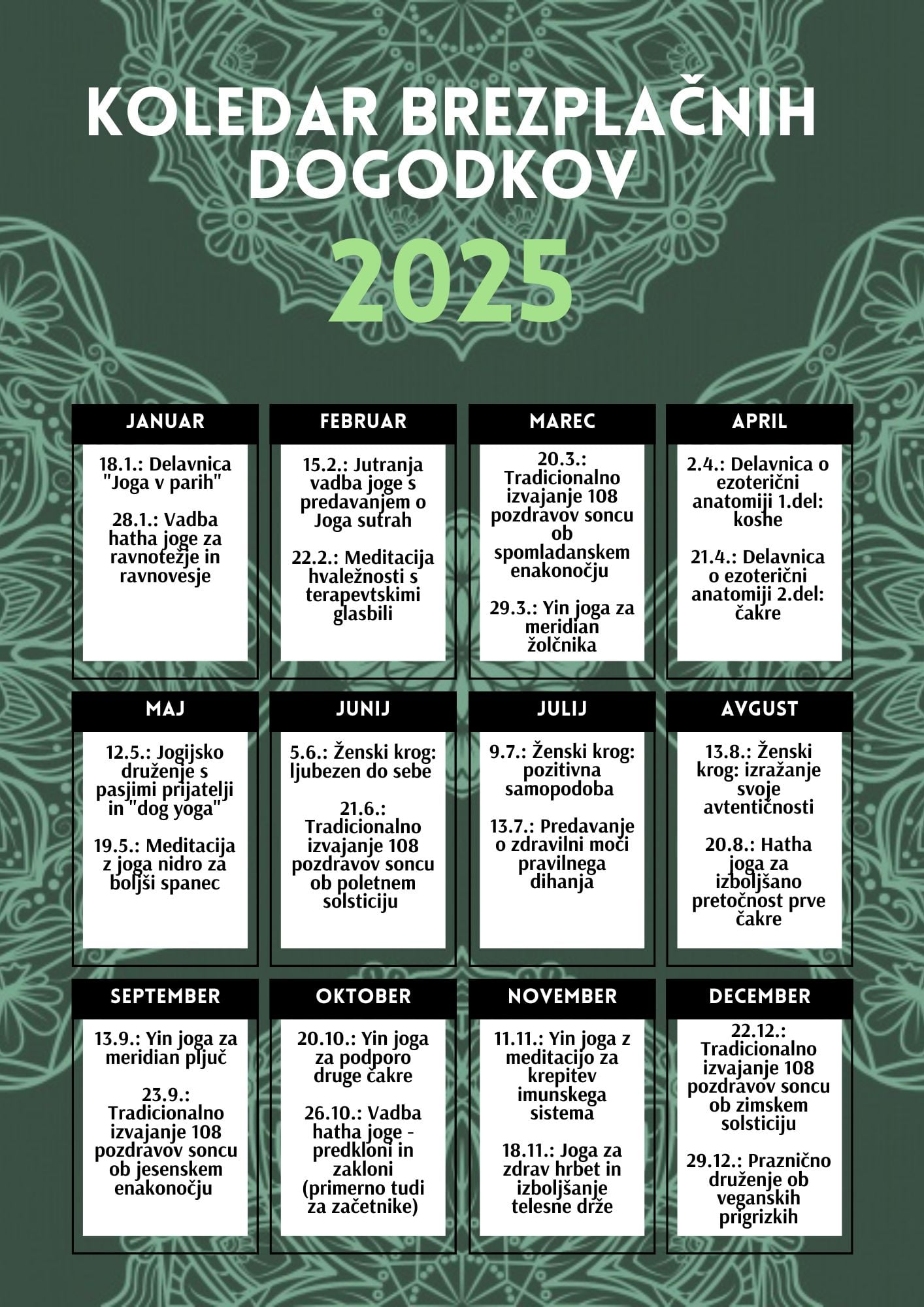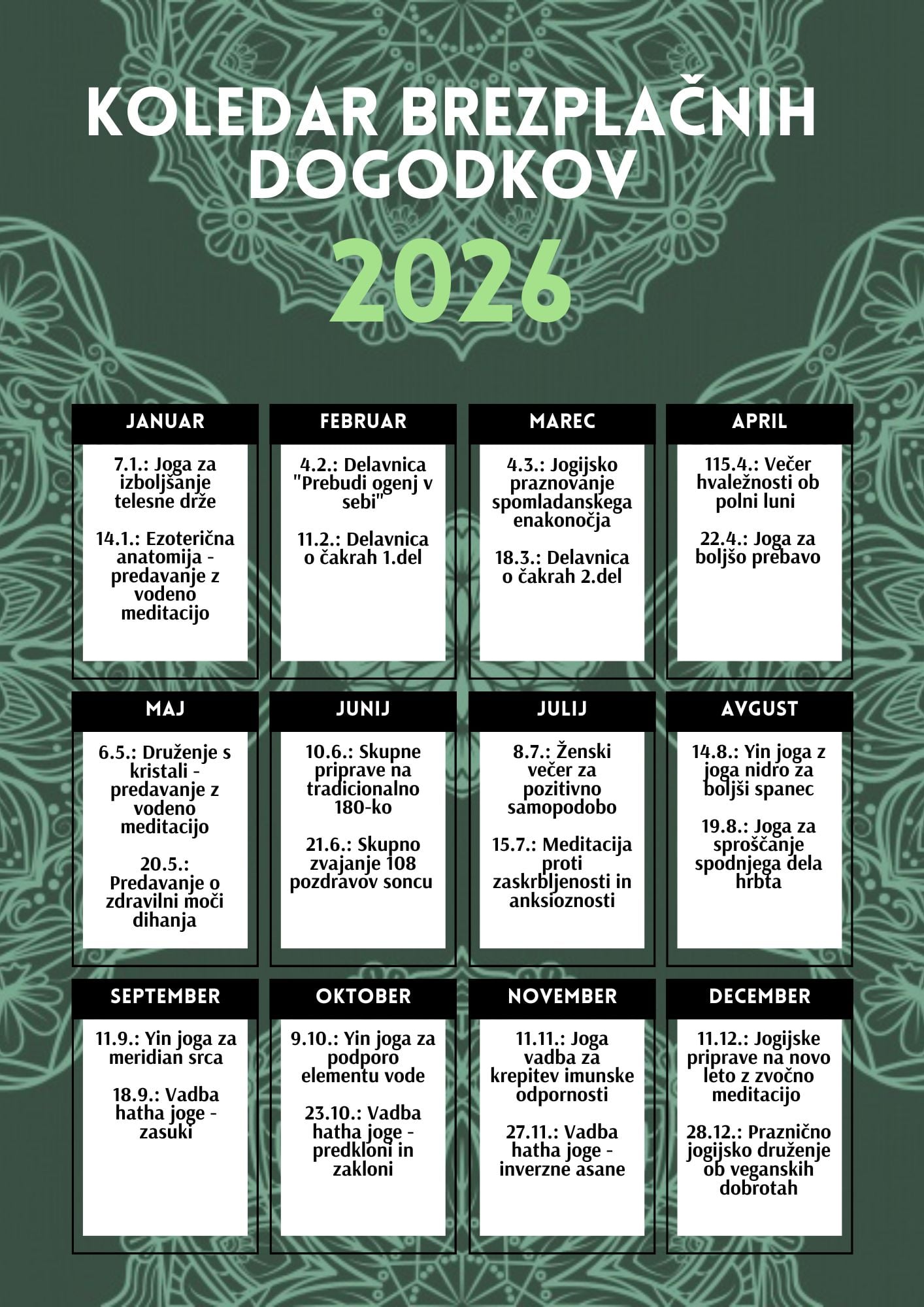 Skozi celo leto organiziramo različne brezplačne dejavnosti, saj je glavni namen društva Ayana širjenje in izmenjava znanja s področja joge in duhovnosti, povezovanje ljudi s skupnimi interesi in spodbujanje osebne in duhovne rasti.